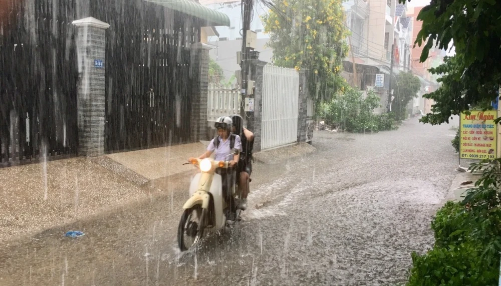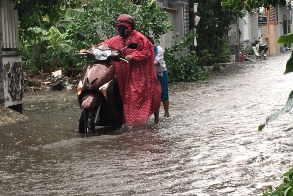Mưa lớn gây ngập một con hẻm ở đường Lê Quang Chiểu. Ảnh: NN