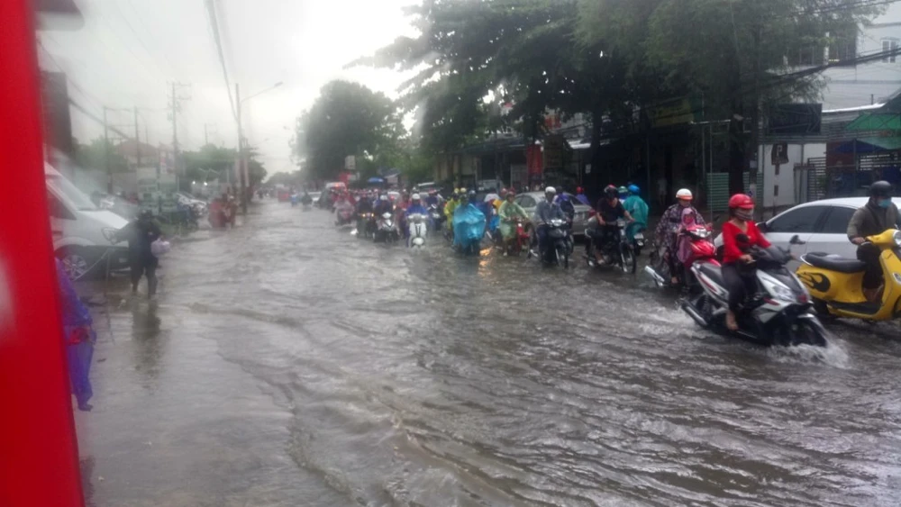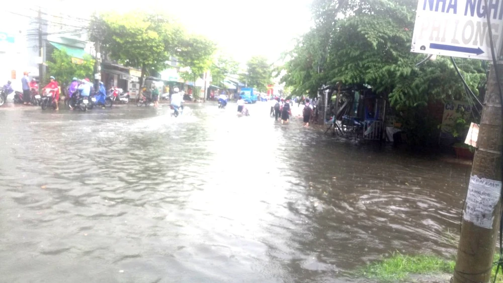 Đường Cách Mạng Tháng 8 ngập nặng sau trận mưa lớn chiều 1-6. Ảnh: NN
