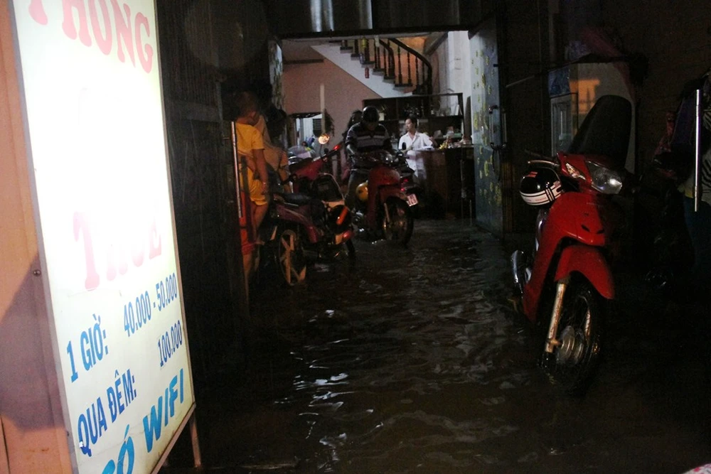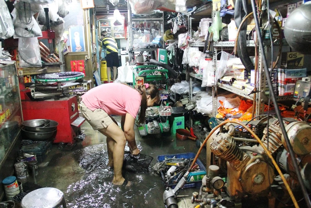Nước tràn vào nhà ven đường khiến cuộc sống, kinh doanh của người dân bị đảo lộn.