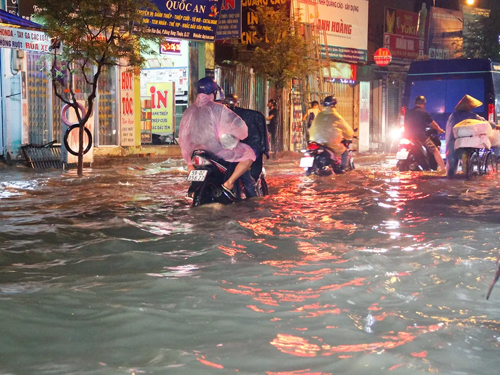 Tại đường Nguyễn Văn Quá, Song Hành Quốc Lộ 22 (quận 12), Nguyễn Ảnh Thủ… Song Hành, Phan Văn Hớn (huyện Hóc Môn) ; Phạm Văn Chiêu (Gò Vấp), Phan Huy Ích (Tân Bình) nhiều đoạn ngập cục bộ, nước dâng cao khoảng 30 đến 50 cm khiến nhiều phương tiện chết máy. Đường ngập đúng lúc tan tầm nên nhiều người rất vất vả để dắt xe thoát khỏi biển nước, số khác tìm cách chạy vào các hàng quán ven đường để tránh mưa.