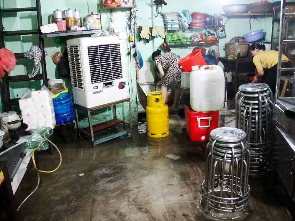 Nước tràn vào nhà dân hai bên đường Nguyễn Văn Quá