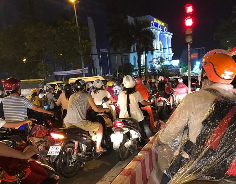 Ngập cộng thêm lượng phương tiện cùng lúc đổ ra đường rất lớn khiến ùn tắc ngày càng kéo dài. Ảnh: FB