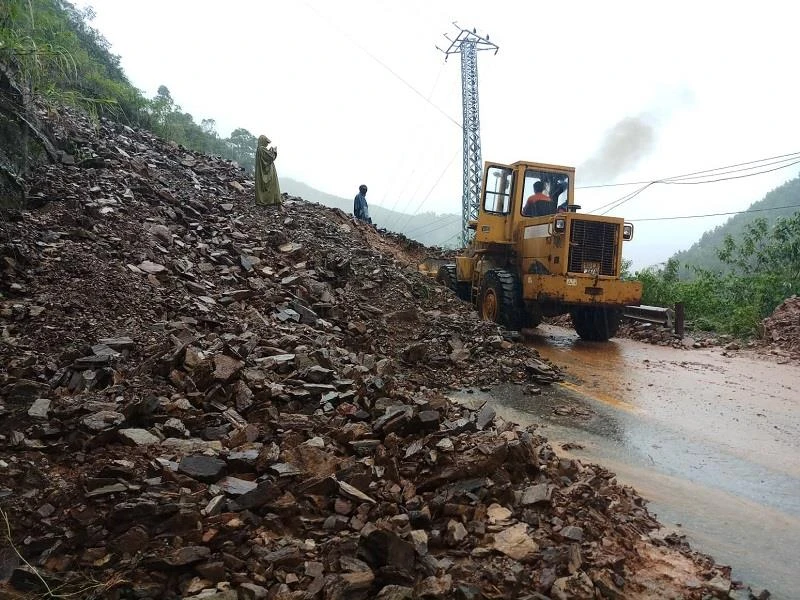 Cơ quan chức năng đang huy động máy móc, nhân công san ủi hàng trăm khối đất đá để thông tuyến. Tuy nhiên, hiện nay đang mưa lớn, lượng đất đá rất lớn khiến việc khắc phục gặp nhiều khó khăn.