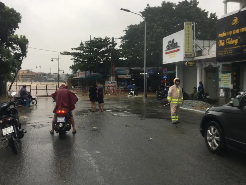 Hiện nay lũ trên các sông đang lên rất nhanh. Mực nước lúc 5 giờ sáng nay trên sông Hương tại Kim Long 2,62 m, trên báo động 2 là 0,62 m; sông Bồ tại Phú Ốc 1,93 m, dưới báo động 2 là 1,07 m; sông Tả Trạch tại Thượng Nhật 60 m, trên báo động 1 là 1 m...