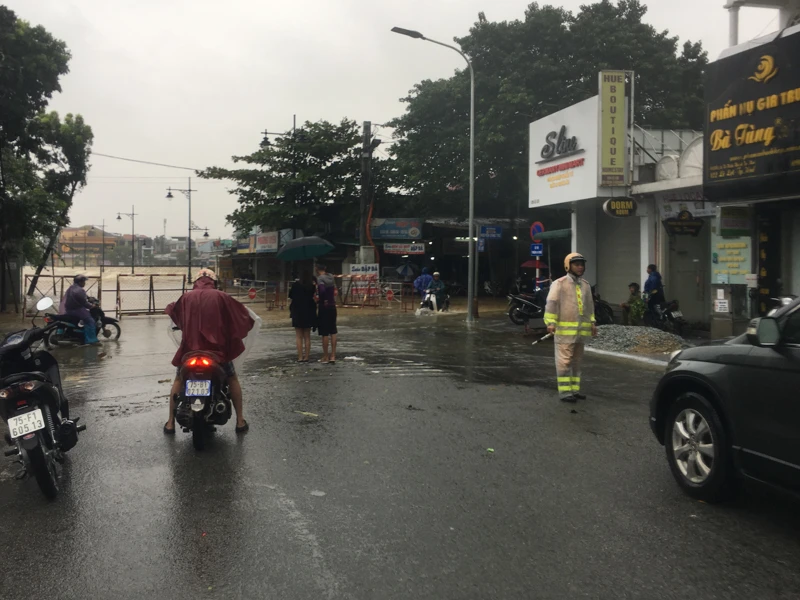 Theo ghi nhận của PV, tại Thừa Thiên-Huế nhiều nơi đã bị ngập sâu, giao thông bị gián đoạn. Nhiều tuyến đường từ TP Huế về các huyện, thị xã bị chia cắt...