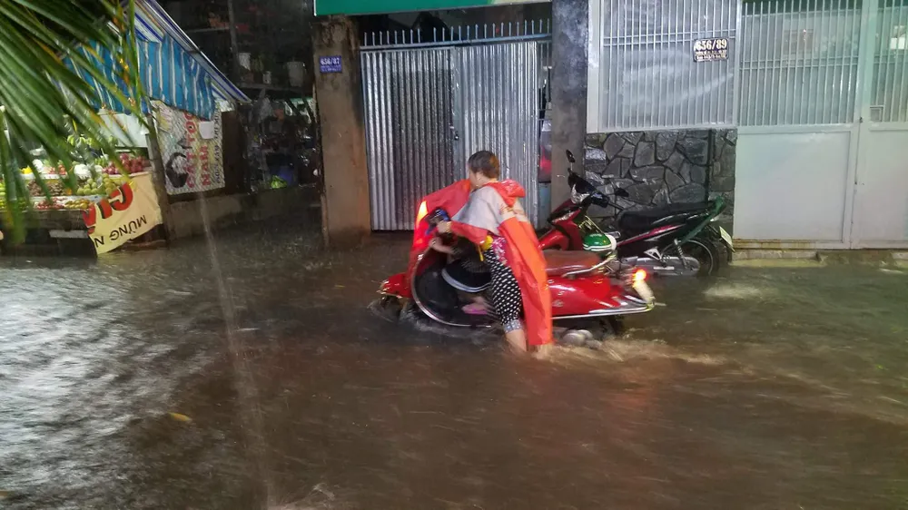 Theo đó, trận mưa với vũ lượng lớn đổ xuống diện rộng trên toàn địa bàn TP.HCM khiến nhiều tuyến đường biến thành sông chỉ trong vòng vài chục phút.