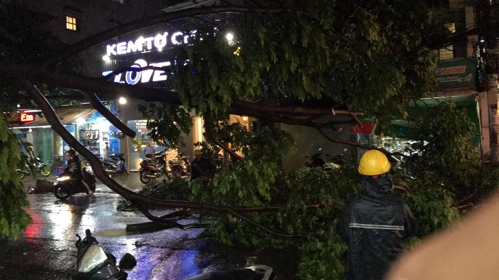 Cây gãy đổ tại ngã ba Thống Nhất - Nguyễn Văn Lượng, quận Gò Vấp.