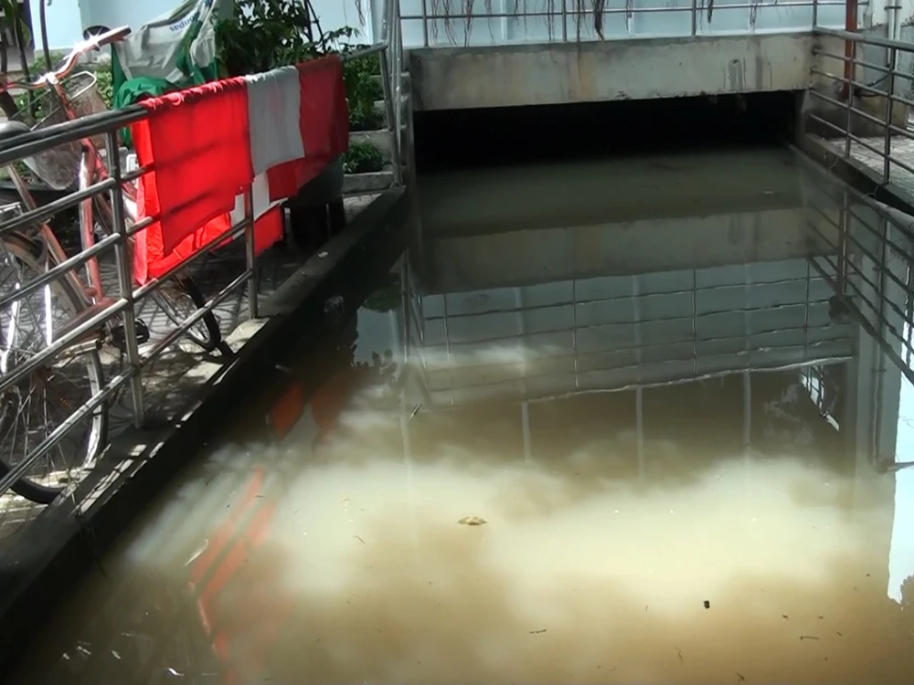 Nhiều người dân đành bất lực với biển nước ở tầng hầm.