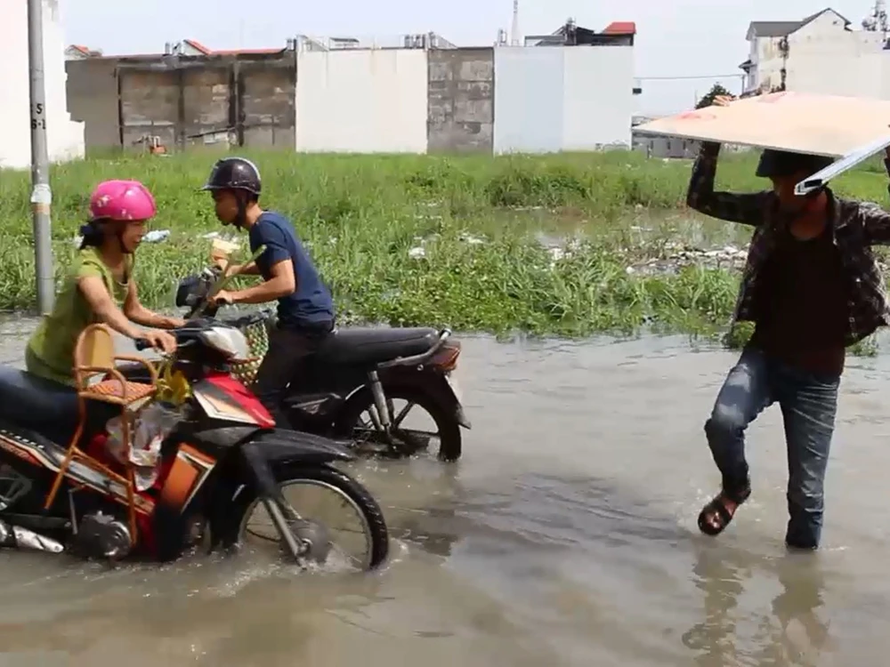 Trận mưa lớn vào sáng sớm 13-10 khiến nhiều tuyến đường ở quận 12 bị ngập.
