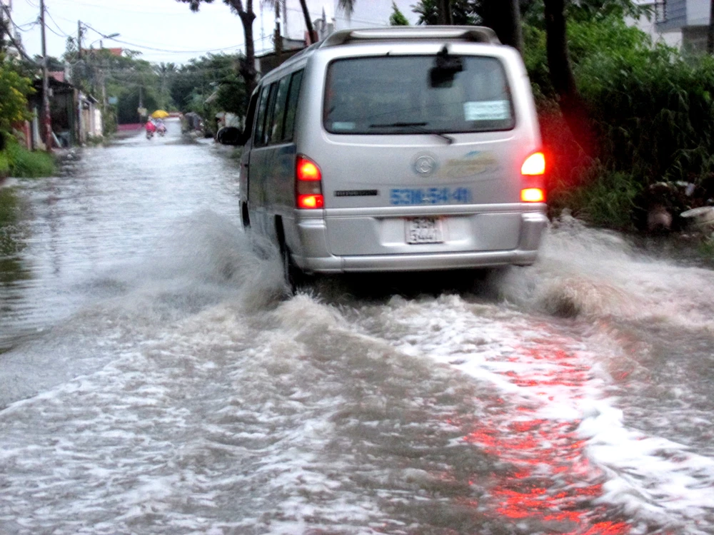 Hàng trăm mét đường 24, P.Linh Đông, Q.Thủ Đức, TP.HCM nước ngập lênh láng