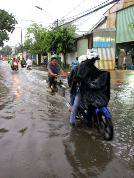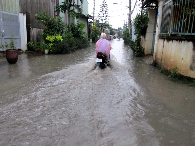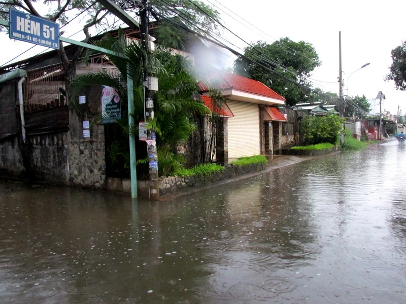 Hẻm 51, đường 24, P.Linh Đông, Q.Thủ Đức, TP.HCM nước ngập như sông