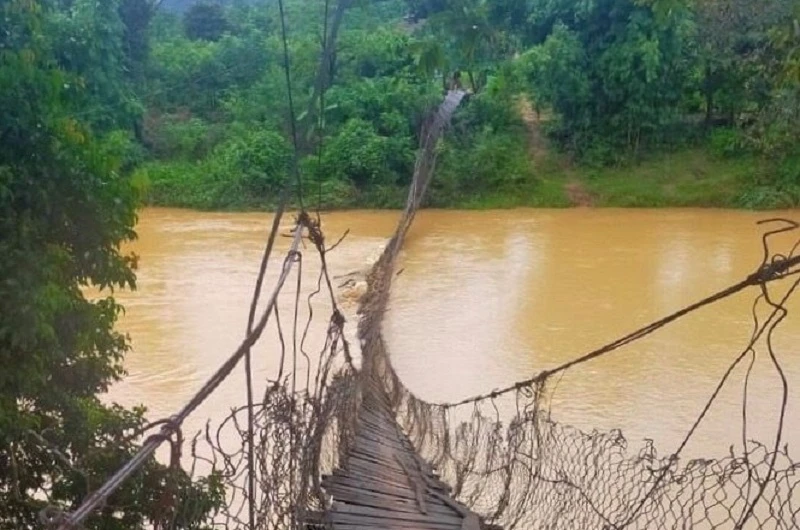 Sập cầu treo khiến nhiều hộ dân bị chia cắt. Ảnh AT