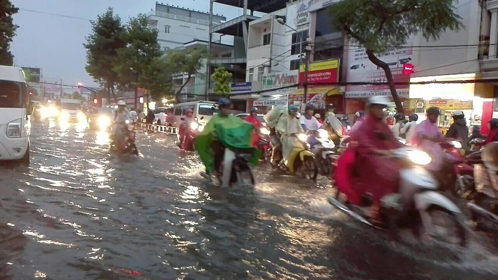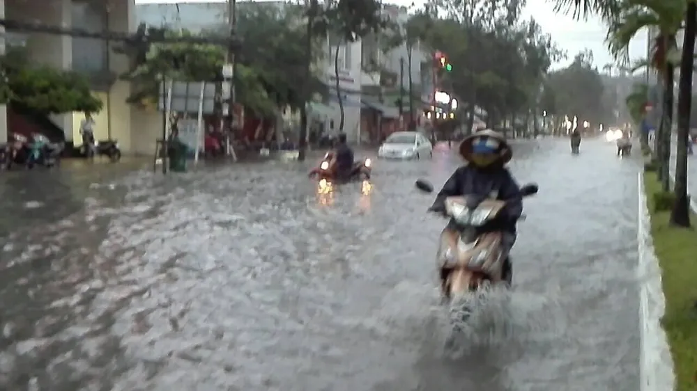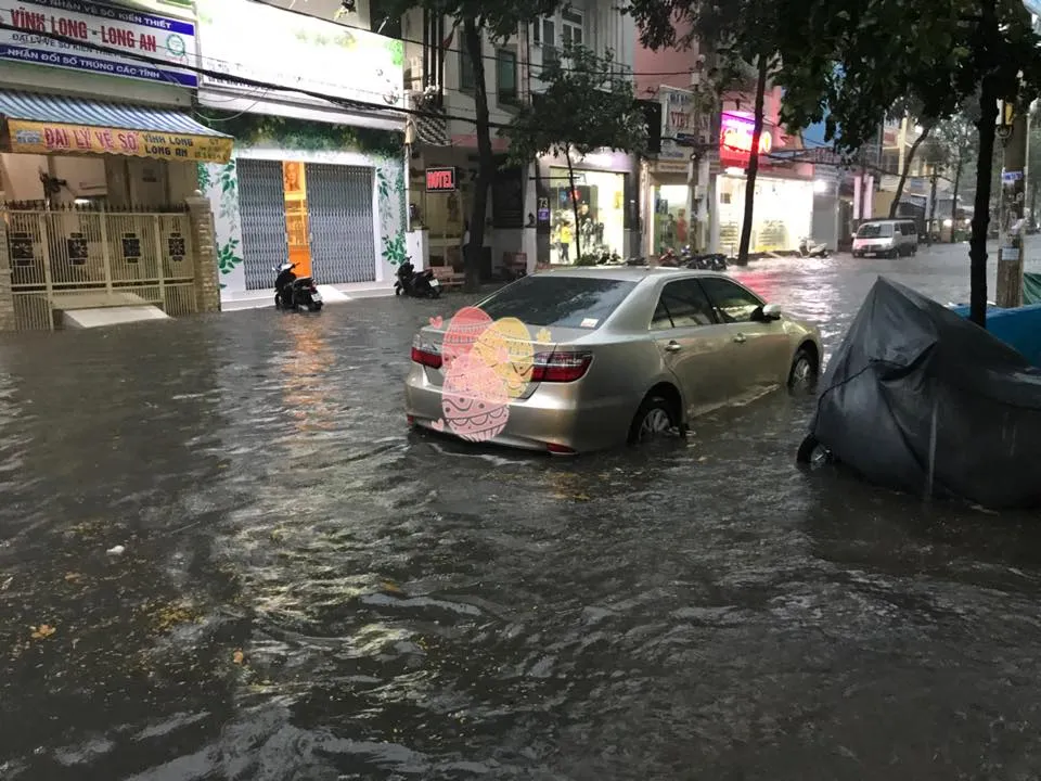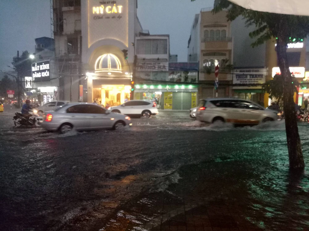 Đường Nam Kỳ Khởi Nghĩa cũng ngập nặng, nước tràn lên cả vỉa hè.