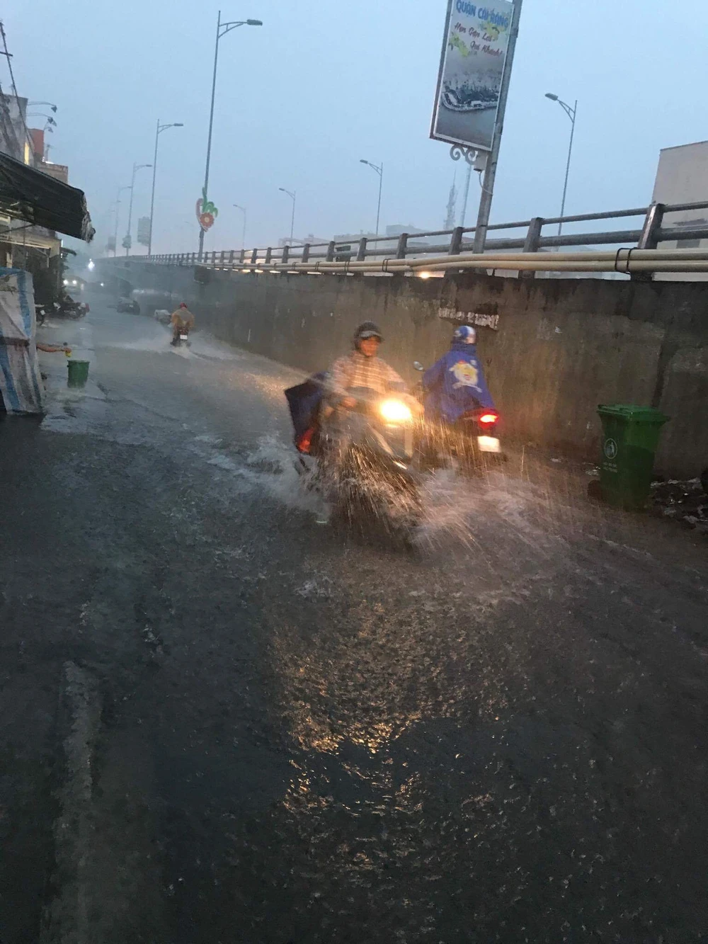 Mưa lớn ngay thời điểm tan giờ làm việc nên giao thông đi lại của người dân gặp nhiều khó khăn…