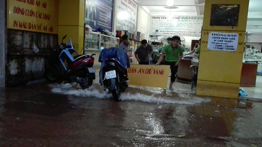 Cơ sở photocopy này nằm đối diện ĐH Cần Thơ bị nước tràn vào tận phía trong.