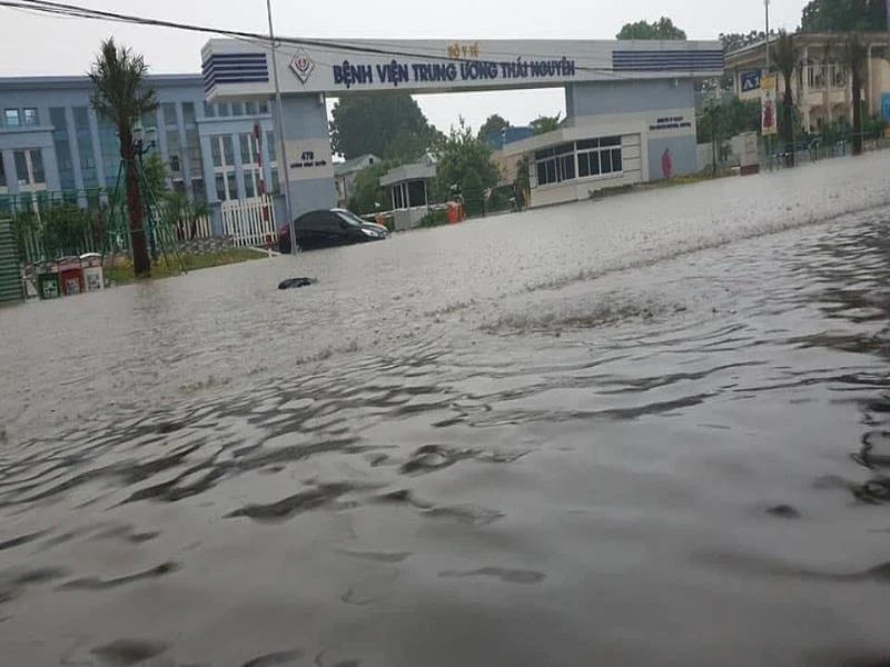 Sáng 10-9, trên mạng xã hội xuất hiện nhiều hình ảnh ngập lụt diễn ra ở TP Thái Nguyên, tỉnh Thái Nguyên. Theo nhiều người dân, đêm 9-9 tại TP Thái Nguyên và những tỉnh lân cận xuất hiện mưa to, gió lớn khiến nhiều con đường bị ngập.