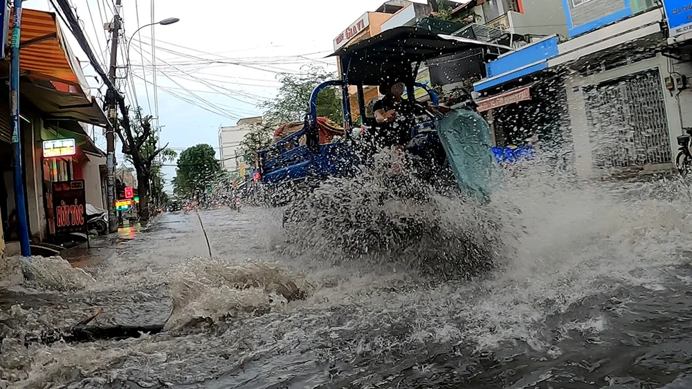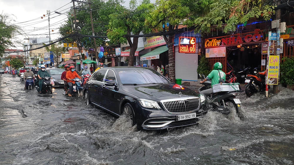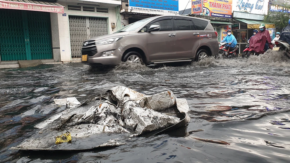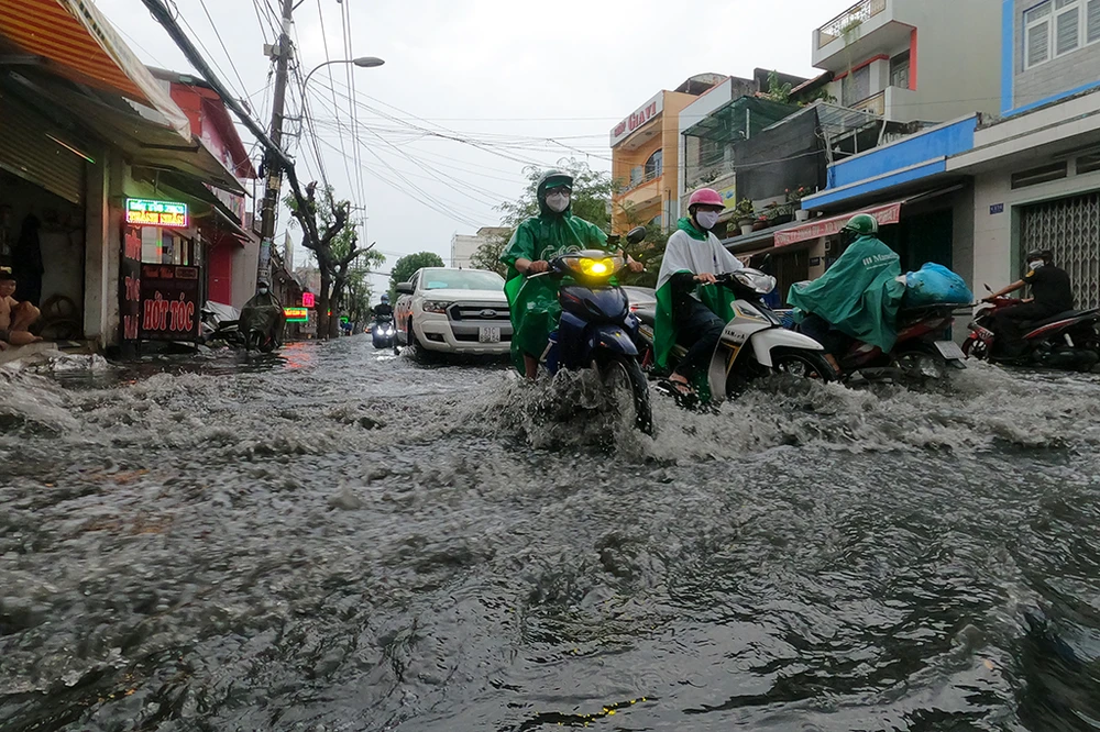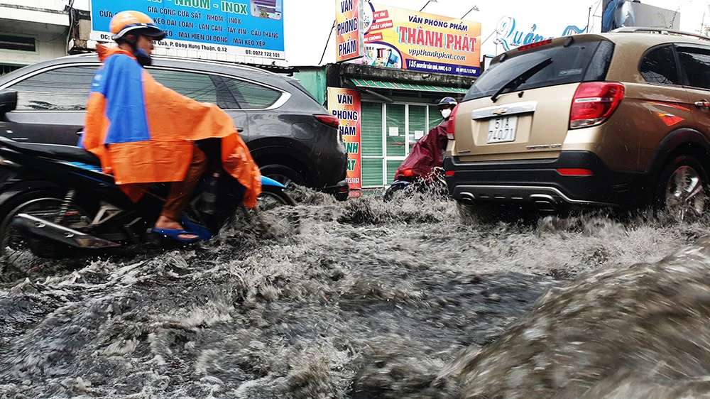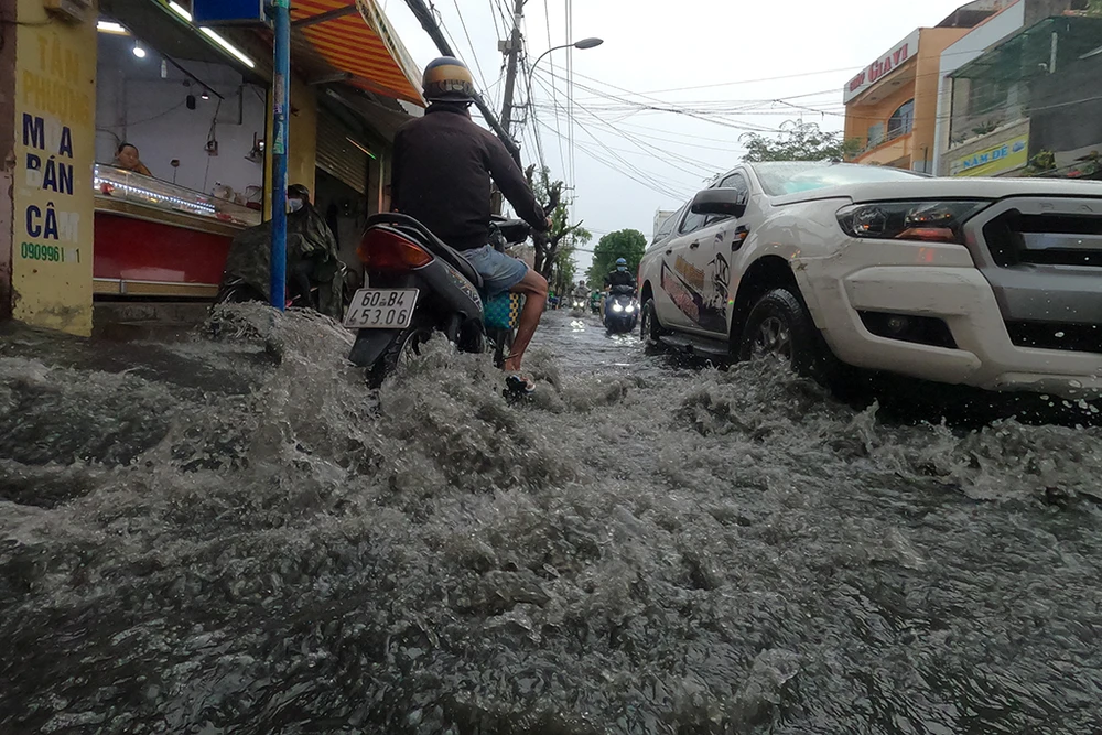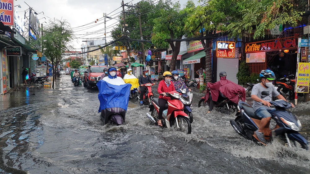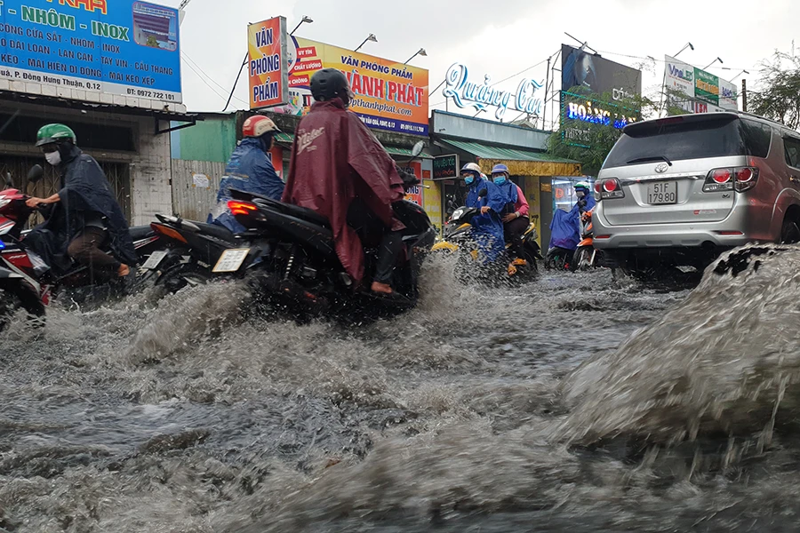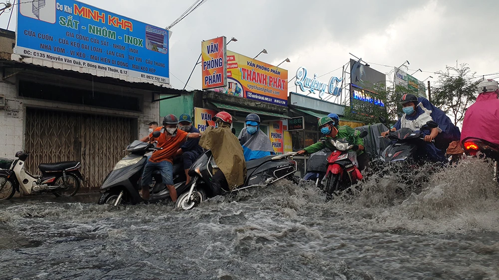 Chiều 24-12, mưa lớn khiến một số tuyến đường ở quận 12, TP.HCM bị ngập sâu. Ảnh: NT
