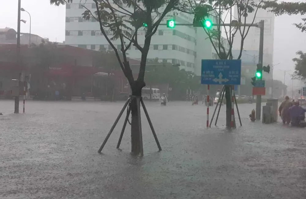 Ngã tư Hàm Nghi - Nguyễn Văn Linh hóa biển nước
