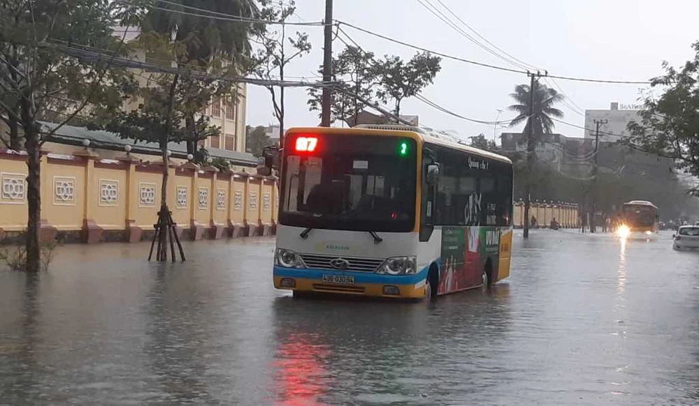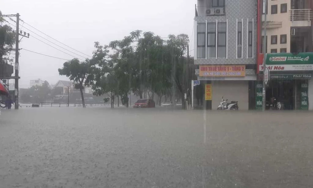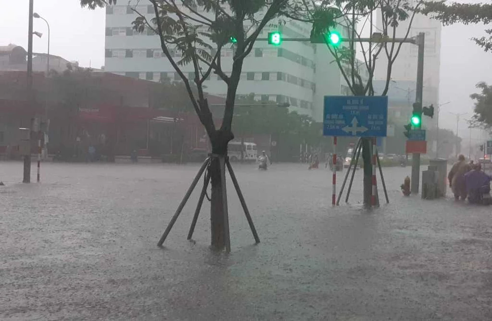 Từ khoảng 2 giờ ngày 9-12, trên toàn địa bàn TP Đà Nẵng có mưa lớn. Cơn mưa kéo dài liên tục đến 9 giờ sáng cùng ngày vẫn chưa dứt khiến nhiều khu vực trung tâm TP biến thành sông.
