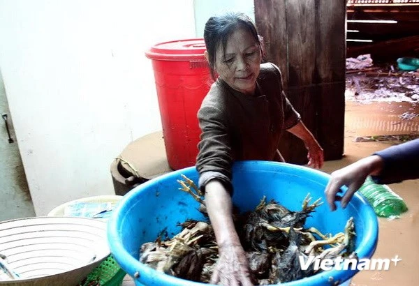 Ngoài thiệt hại về vườn rau, hoa, đàn gà hơn 100 con của bà Nguyễn Thị Sang cũng bị chết do mưa lũ.