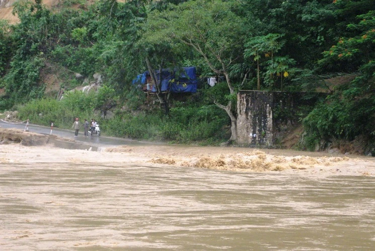 Cầu Phà Lò (Trung Thương, Quan Sơn) bị lũ nhấn chìm gây ách tắc giao thông nghiêm trọng. Ảnh: HOÀNG SA
