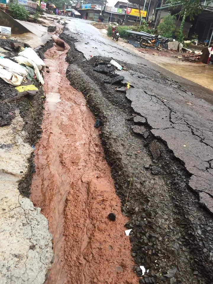 Những con đường khi hạn hán bụi bay mờ mịt thì giờ đây mưa lũ làm sói lở hết cả phần bê tông, trơ ra phần đất thịt - Ảnh Việt Anh