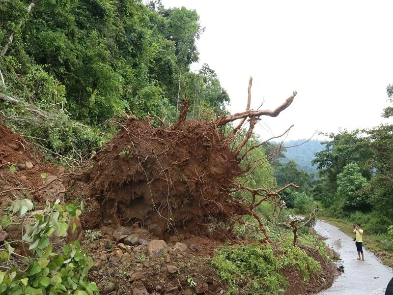 Một cây lớn ngã đổ do mưa lũ ở Đắk Nông. Ảnh: HUY TRƯỜNG