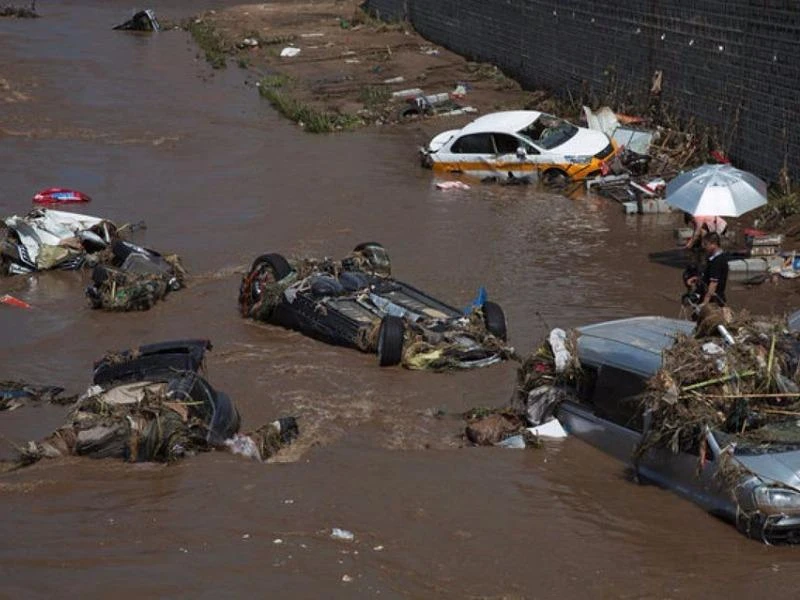 Hình ảnh dòng nước lũ cuốn trôi hàng loạt xe hơi ở tỉnh Cát Lâm hôm 15-7. Ảnh: REUTERS