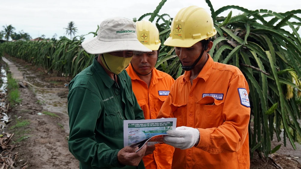 Hướng dẫn người dân huyện Chợ Gạo, tỉnh Tiền Giang sử dụng điện an toàn để chong đèn thanh long.