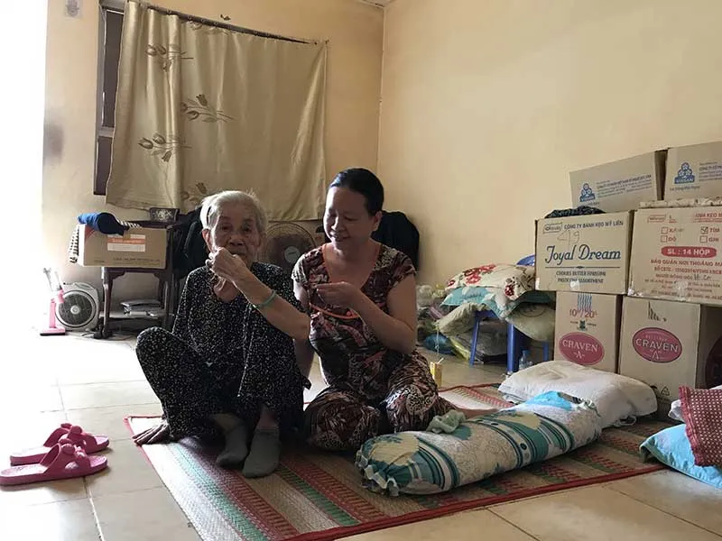 Bà Nguyễn Hạc Đoan Trâm và mẹ già hơn 80 tuổi trong căn hộ trống tại chung cư Tân Mỹ, quận 7. Ảnh: VIỆT HOA