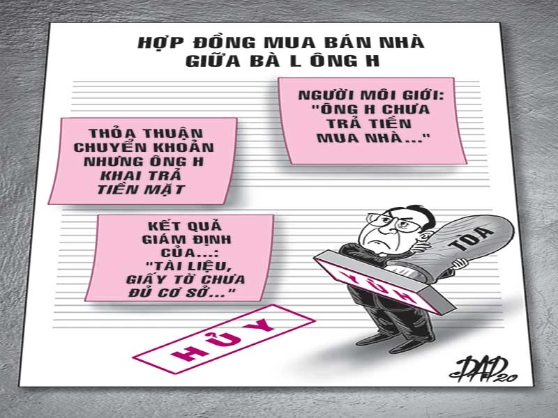 Thực tế sau khi ký công chứng việc mua bán nhà xong thì bản chính giấy tờ nhà, đất bà Liên vẫn đang giữ. Tuy nhiên, ông Hoài lại cho rằng đã giao giấy tờ bản chính cho ông Thành để đi trước bạ sang tên cho ông. Nếu như vậy thì ông Thành phải là người giữ bản chính giấy tờ nhà chứ không phải là Liên. Từ đó HĐXX xác định không có chứng cứ nào thể hiện bên mua nhà là ông Hoài đã giao tiền cho bà Liên. Vì vậy, yêu cầu hủy hợp đồng mua bán nhà của nguyên đơn là có cơ sở chấp nhận. Sau đó bị đơn kháng cáo bản án sơ thẩm.
