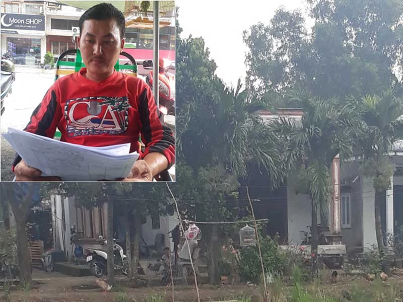 Anh Hà Thanh Kiệt bức xúc phản ánh vụ việc (ảnh nhỏ) và mảnh đất mà anh đã mua đấu giá thành (ảnh lớn). Ảnh: NGUYỄN HIỀN