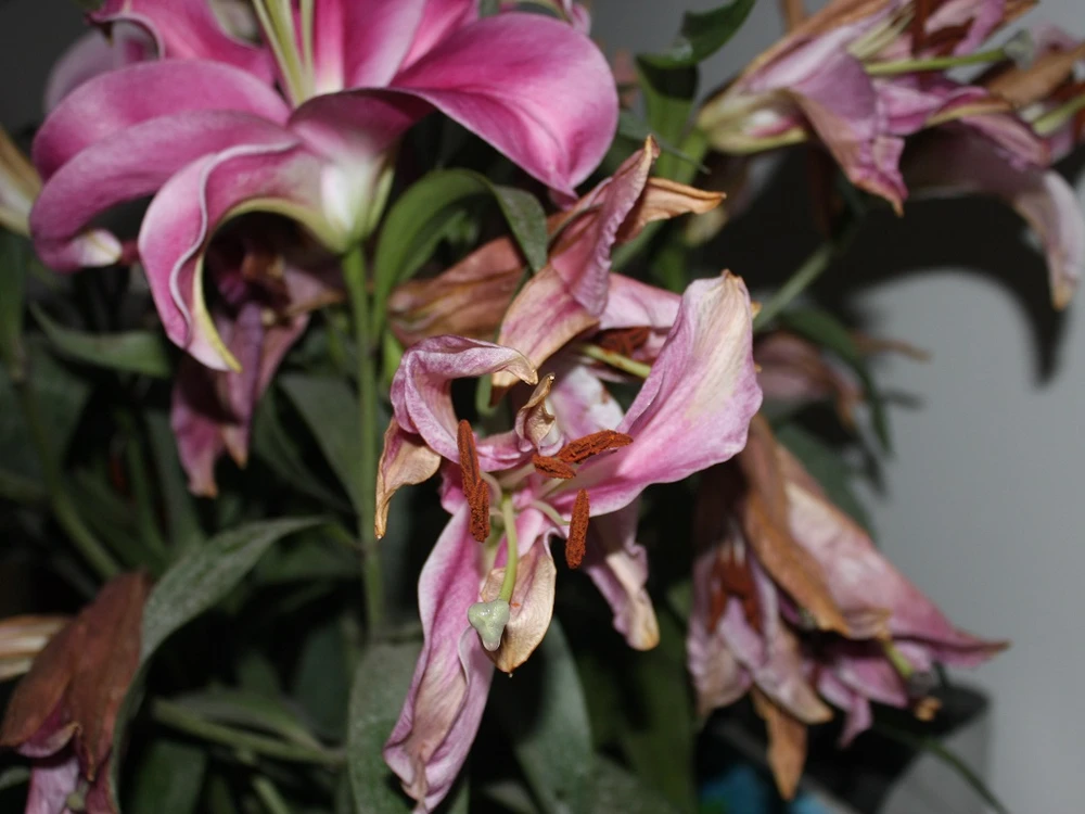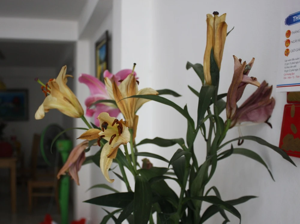 Dù mới chỉ cắm bình được 3-4 ngày, đa số các bông hoa đã héo, tàn.
