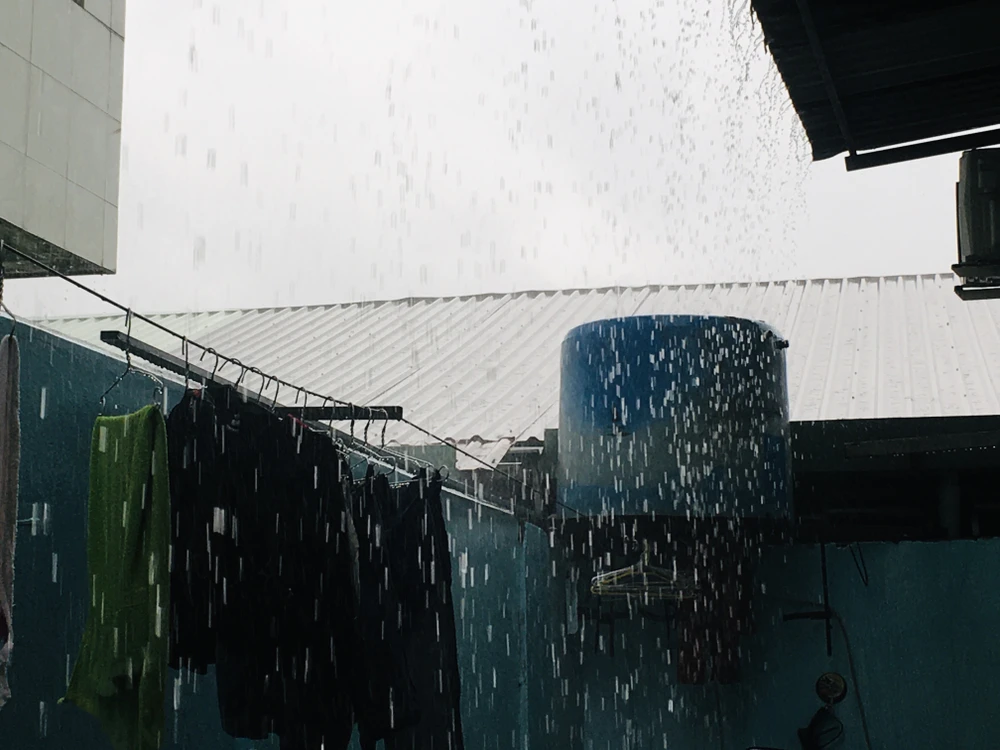 Sấm bắt đầu từ khoảng 5 giờ sáng. Tới khoảng hơn 6 giờ, thay vì cái nắng oi bức chào ngày mới như mọi ngày, thời tiết có dấu hiệu dịu lại, mây đen kéo tới, trời tối sầm. Chỉ chốc lát sau, mưa ào ào tới.