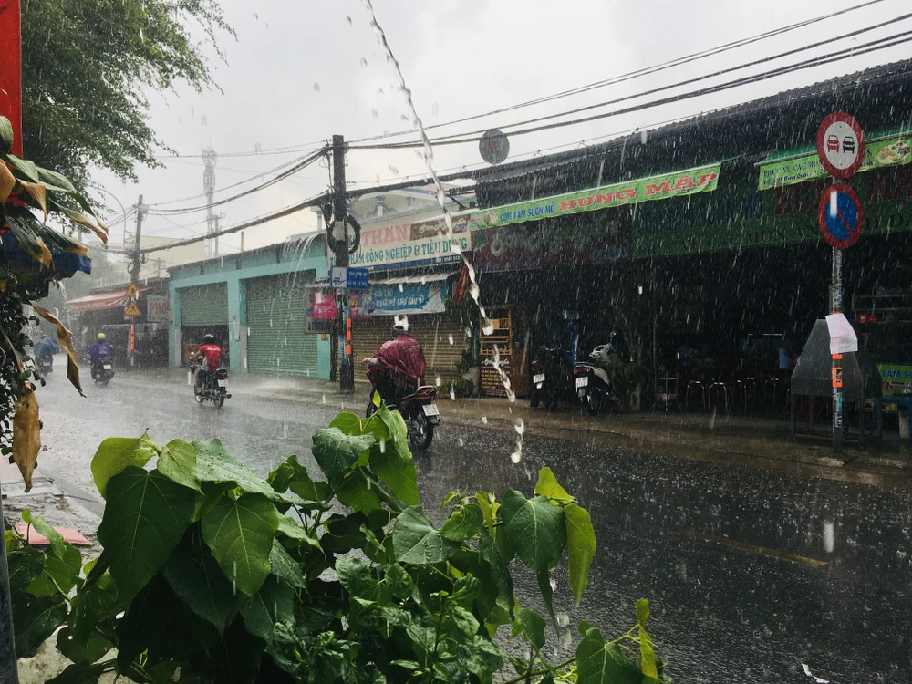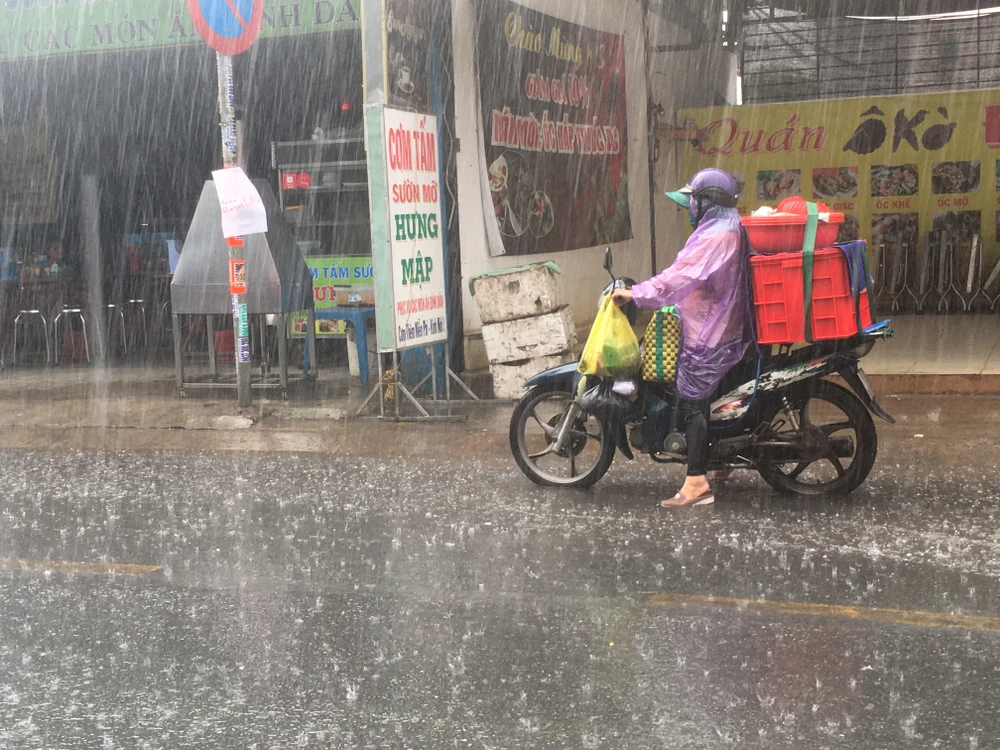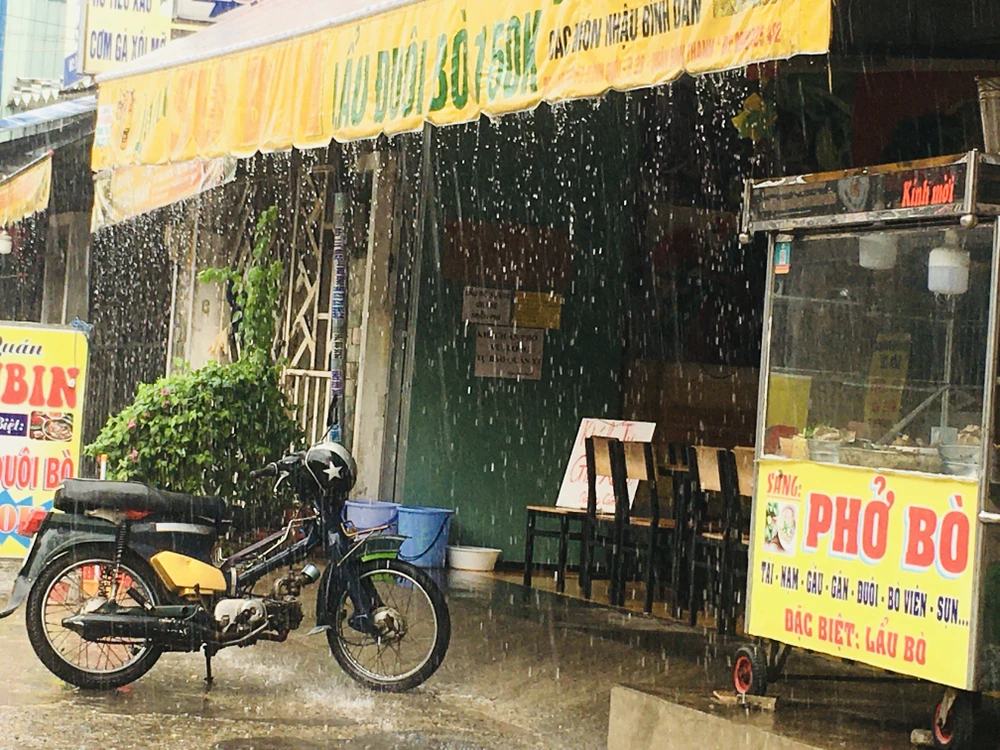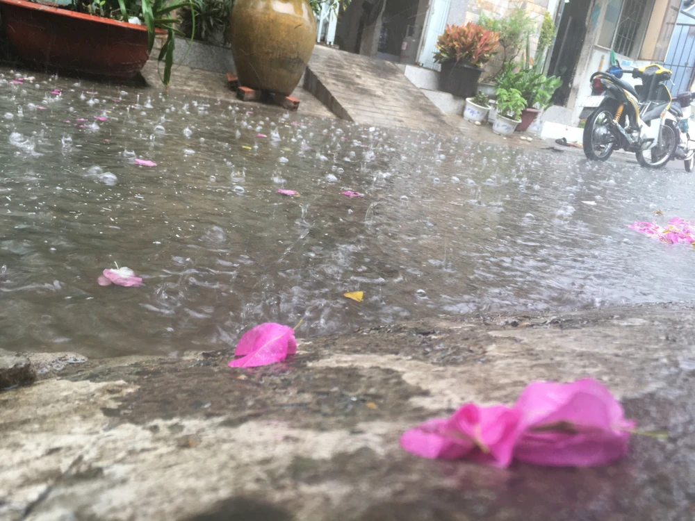 Cơn mưa tầm tã chỉ trong chốc lát cũng phần nào khiến thời tiết mát mẻ hơn. Ảnh: NGUYỄN TRÀ