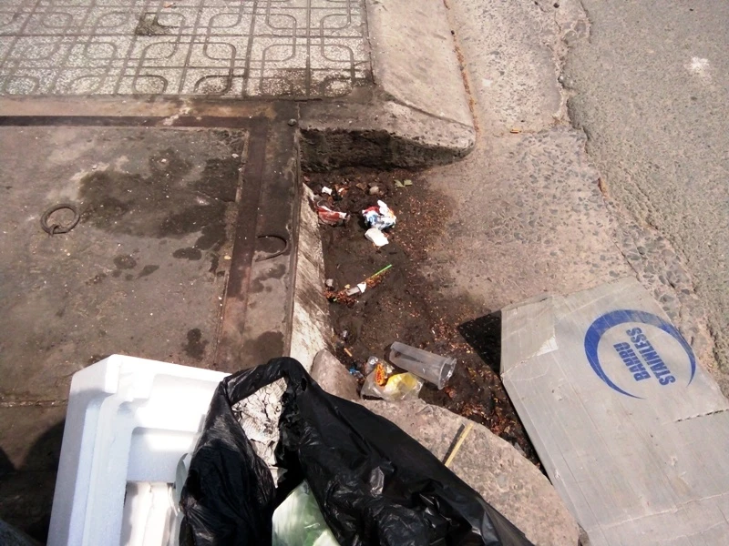 Theo Trung tâm Chống ngập, tình trạng xả rác lấp bít miệng thu nước làm gia tăng tình trạng ngập. Ảnh: K.B