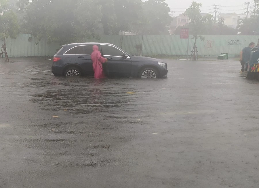 Mưa trắng trời tại Đà Nẵng suốt từ sáng 11-9 khiến nước không kịp rút. Ảnh: TẤN VIỆT