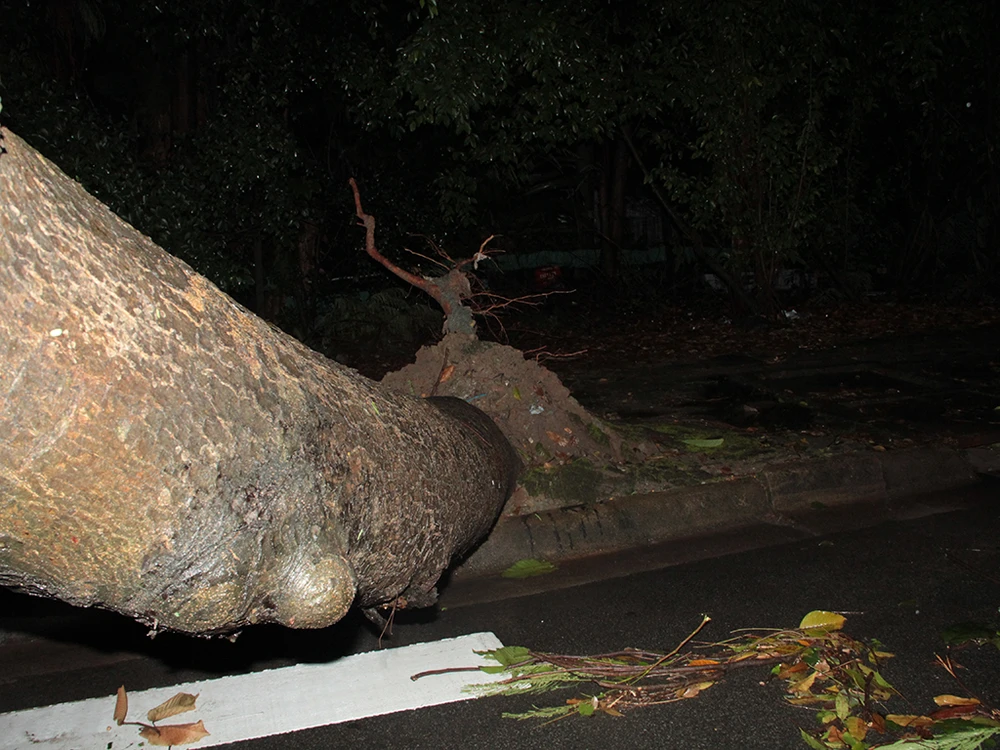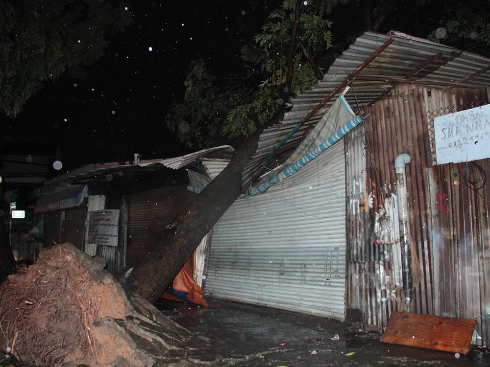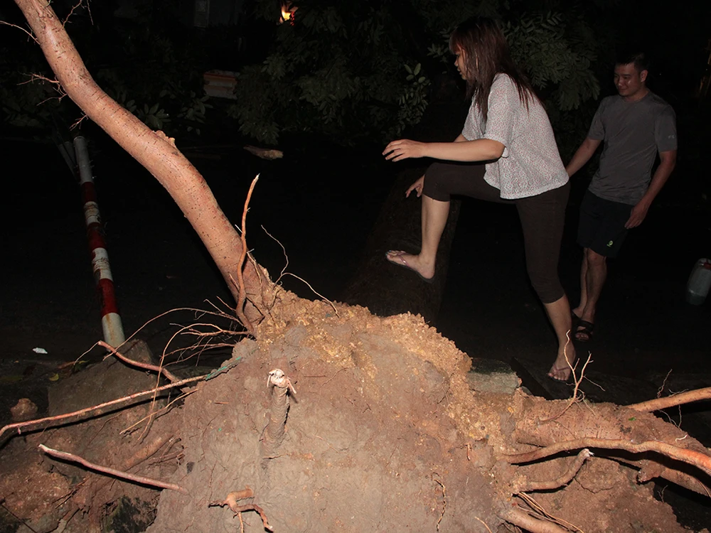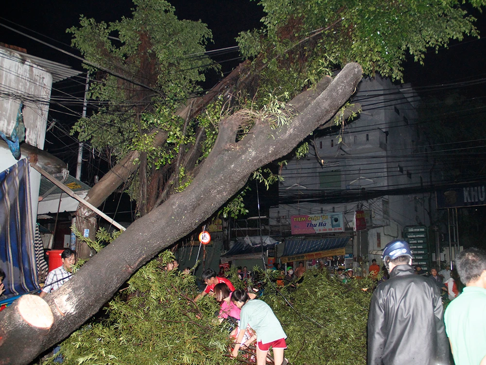 Trong đó, tại đường ại đường Linh Trung (quận Thủ Đức) có hơn 10 cây xà cừ có đường kính khoảng 70 cm, cao 20m, bật gốc ngã chắn ngang đường, làm đứt đường dây điện, mạng cáp viễn thông làm cho tuyến đường này bị mất điện hoàn toàn.