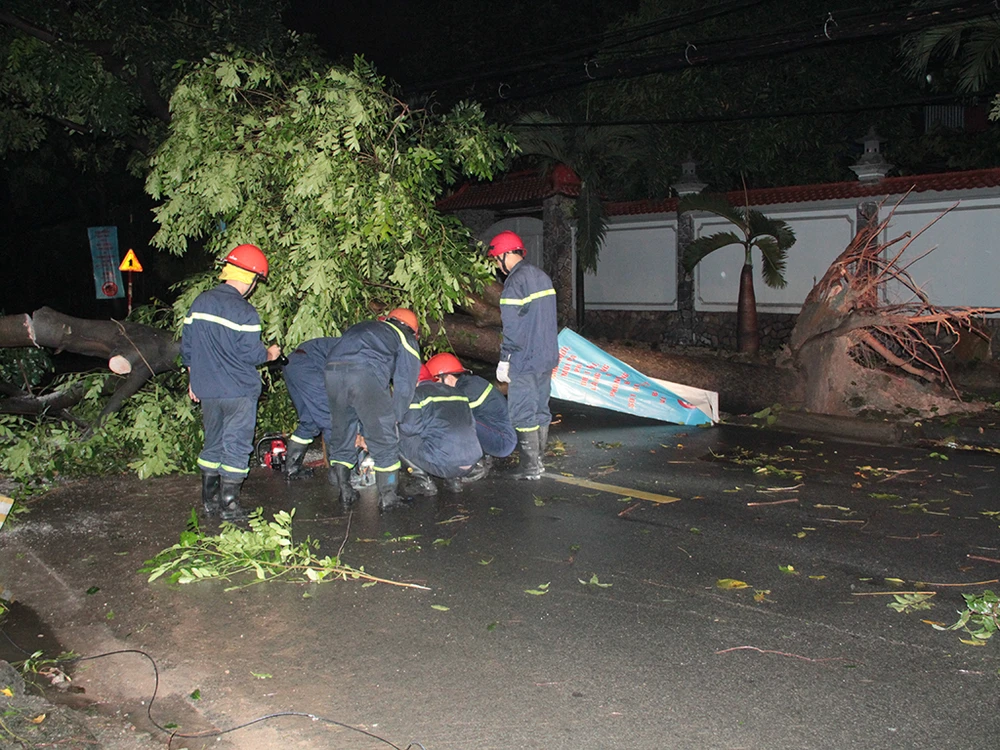 Đến khuya cùng ngày, lực lượng chức năng vẫn tiếp tục khắc phục các sự cố do thiên tai gây ra.