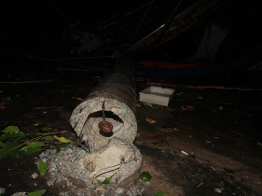 Cây gãy, kèm theo đó là cột điện cũng bị gãy đổ khiến một khu vực rộng lớn của quận Thủ Đức và thị xã Dĩ An (Bình Dương) bị mất điện.