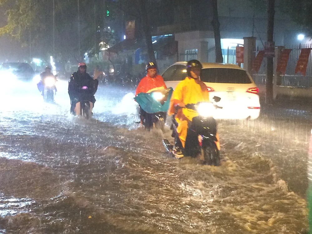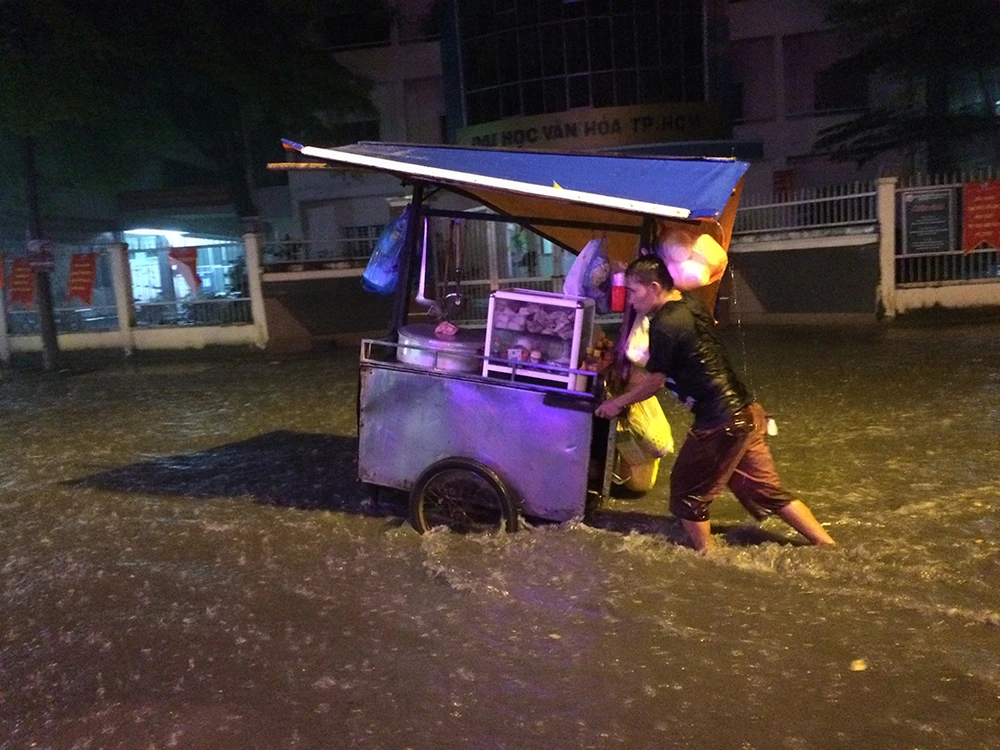 Trong khi đó, mưa lớn khiến một số tuyến đường ở quận 1, quận Bình Thạnh, Gò Vấp, Thủ Đức gây ngập nặng. Theo ghi nhận tại đường Quốc Hương, đường 65, đường 41, đường Nguyễn Văn Hưởng ( quận 2,TP.HCM), ngập sâu trong nước khiến nhiều xe máy chết hàng loạt. Nhiều người tìm chỗ sửa xe.