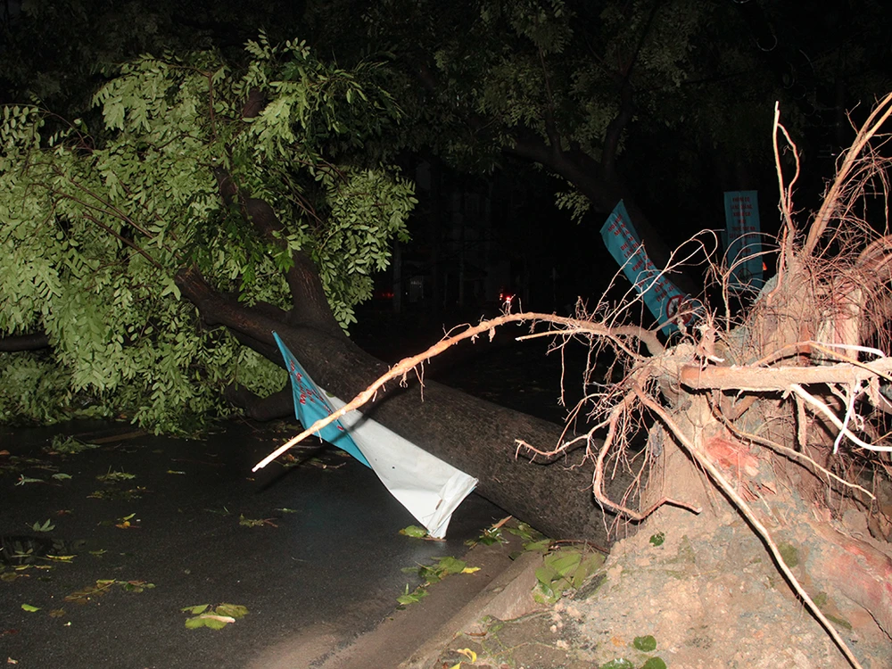 Trong đó có cây đè trúng nhà dân bên đường.