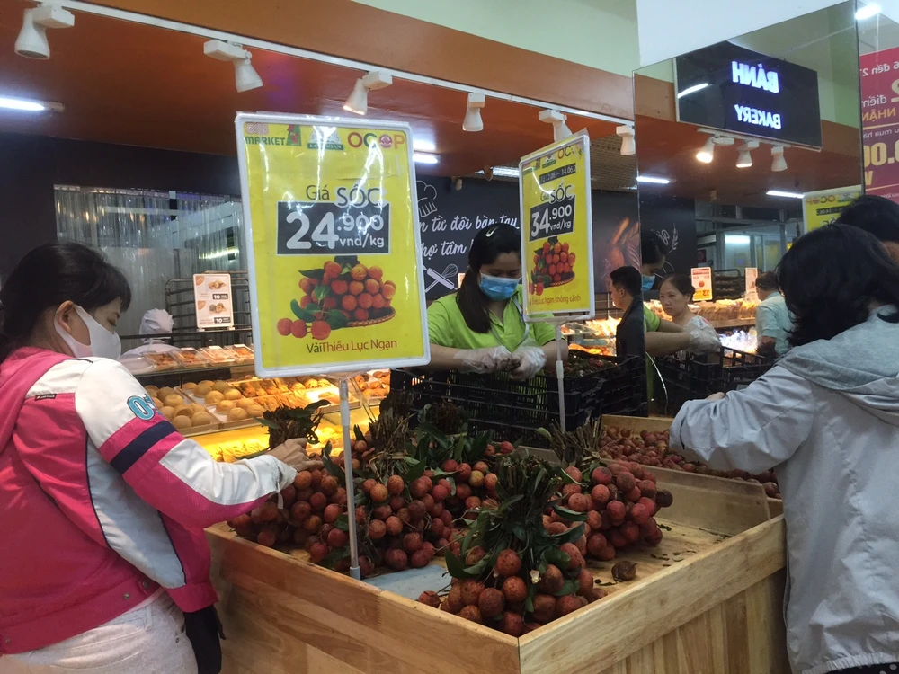 Vải thiều bày bán tại siêu thị tại TP.HCM (Ảnh TÚ UYÊN)