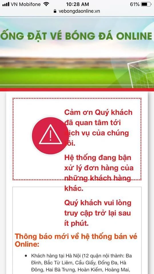 Nhiều người vẫn thắc mắc vì chỉ sau khi mở bán vài phút, website của VFF đã thông báo hết vé trận Việt Nam-Philippines là thông báo thật hay vì “sập mạng”. Tuy nhiên, hầu hết người mua đều cho rằng không thể truy cập được trong khi số người thông báo mua được rất hiếm.