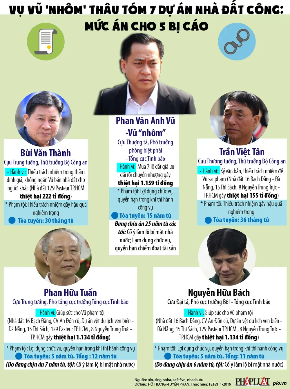 Mức án của Vũ 'nhôm' và 4 cán bộ ngành công an