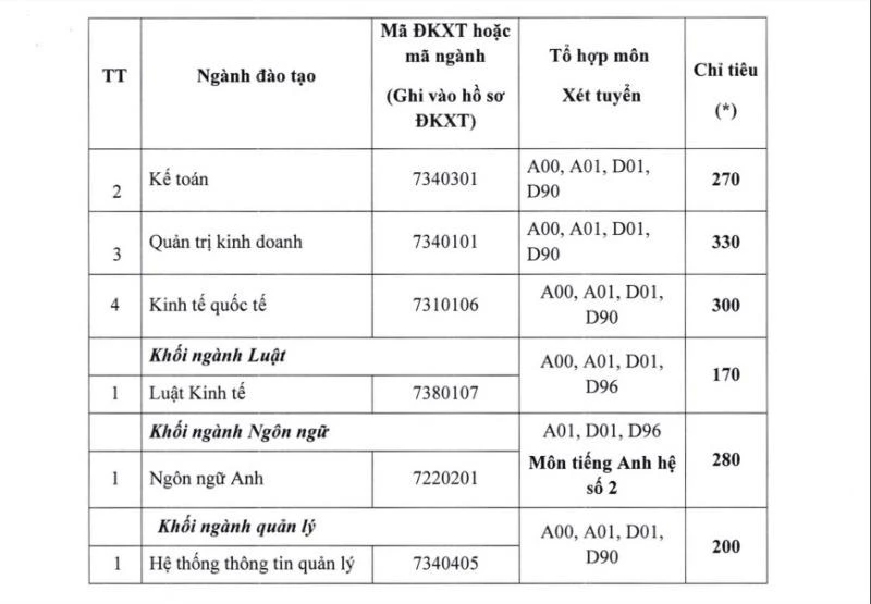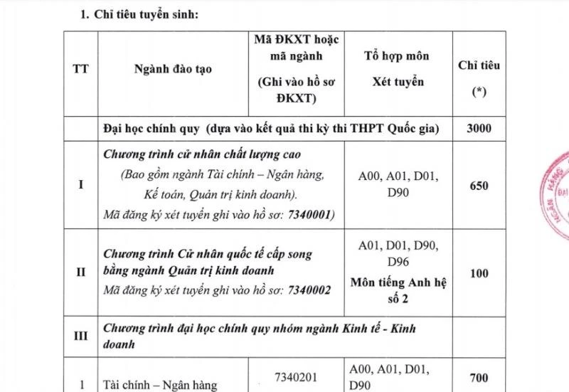 Được biết, tổng chỉ tiêu tuyển sinh của trường năm nay là 3.000 chỉ tiêu. Chỉ tiêu và tổ hợp xét tuyển cụ thể cho các ngành như sau: