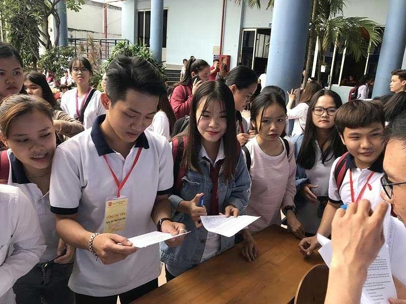 Sinh viên Trường ĐH Văn Lang tham gia ngày hội pháp luật bổ biến những chính sách về BHYT. Ảnh: PV