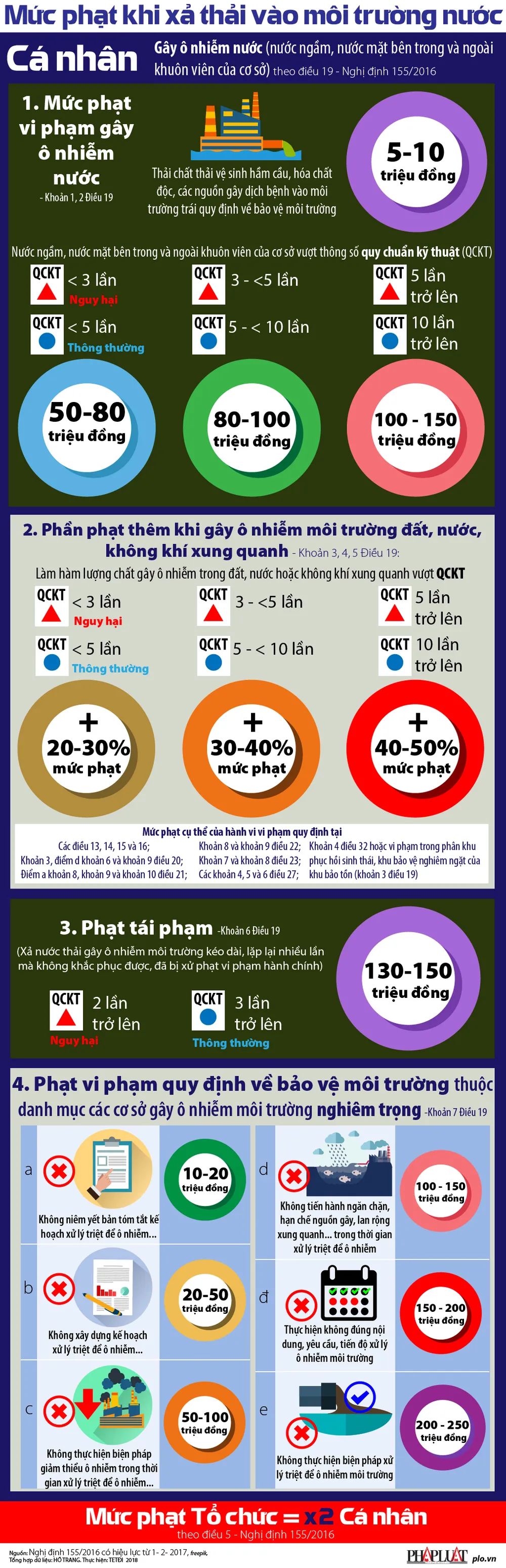 (PLO)- Việc gây ô nhiễm môi trường đang diễn ra dưới nhiều chiêu thức tinh vi. Dưới đây là mức phạt của các hành vi vi phạm gây ô nhiễm đất, nước, không khí được quy định tại nghị định 155/2016 có hiệu lực từ 1-2-2017.
