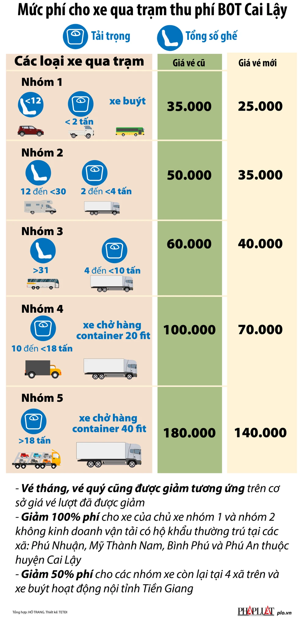 (PLO)- Từ ngày 21-8, mức phí của các xe qua trạm này sẽ chỉ còn 25.000-140.000 đồng/lượt, thay vì 35.000-180.000 đồng/lượt như hiện nay.
