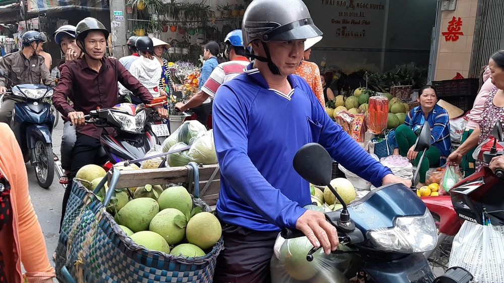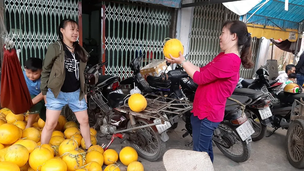 Các chủ vườn liên tục chở trái cây ra chợ phục vụ nhu cầu người dân